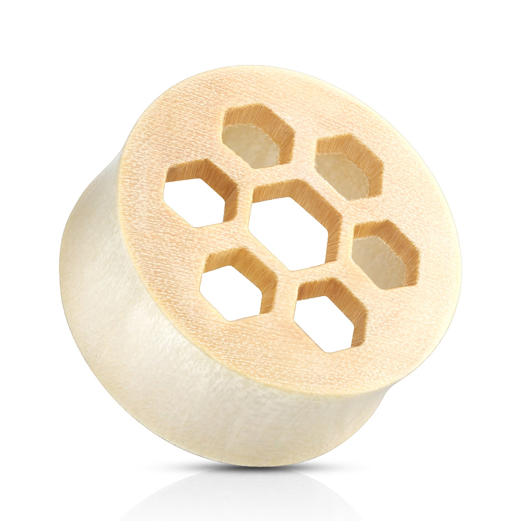 Het juweel is versierd met een gestanst ontwerp van zeven zeshoeken.Het doet erg denken aan een honingraat in een bijenkorf. Doordat de diameter varieert voor stretches van 10 mm tot 25 mm, is het niet geschikt voor beginners. Maar als je net begonnen bent met het stretchen, heb je met dit sieraad wel iets om naar uit te kijken.
