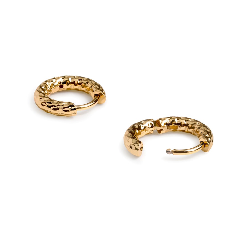 Klaar voor een upgrade? Deze oorbellen met gehamerd effect zijn je nieuwe favoriet. Ze zijn ideaal voor oorlel piercings, zodat je de perfecte basis hebt om al je sieraden te stacken. Plus, met hun scharnieropening zijn ze super makkelijk om in te doen en zitten ze goed vast. Moeiteloze stijl.