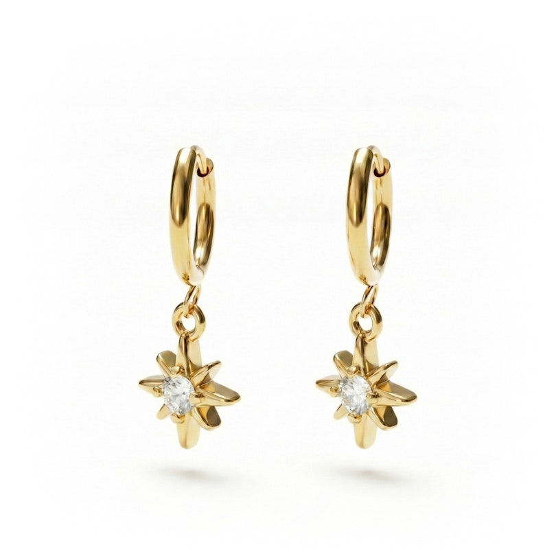 Dit tweetal huggies met zonnestraal detail voelt als een boost elke keer dat je ze draagt. Elke ring heeft een gedetailleerde zonnestraal bedel met een centrale steen, wat je oor net wat meer persoonlijkheid geeft zonder te hard te proberen.