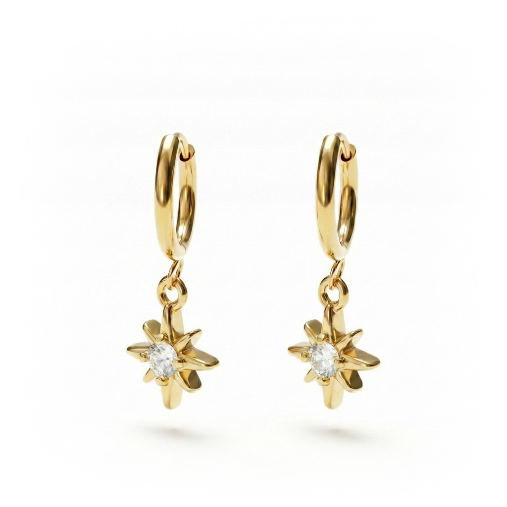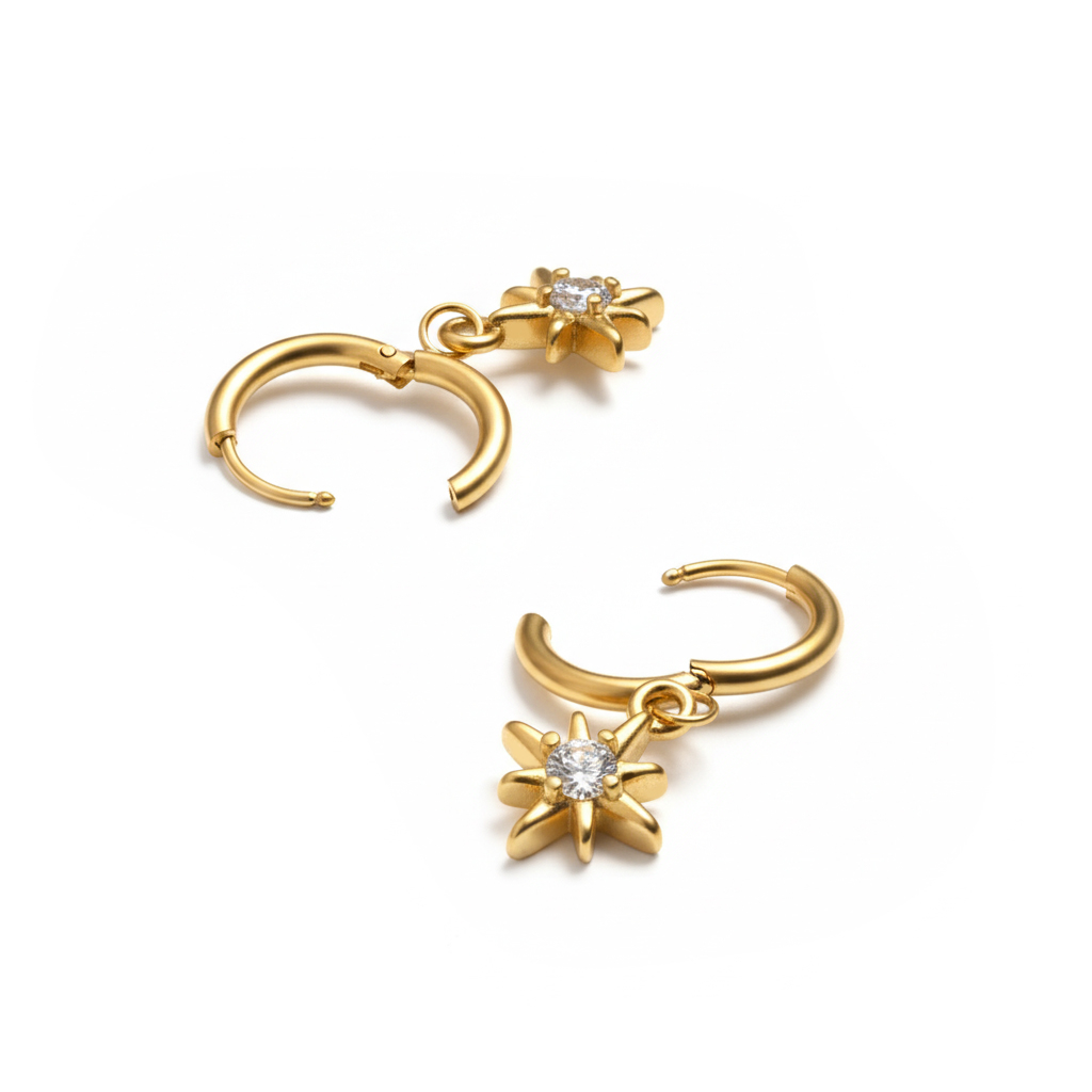 Dit tweetal huggies met zonnestraal detail voelt als een boost elke keer dat je ze draagt. Elke ring heeft een gedetailleerde zonnestraal bedel met een centrale steen, wat je oor net wat meer persoonlijkheid geeft zonder te hard te proberen.