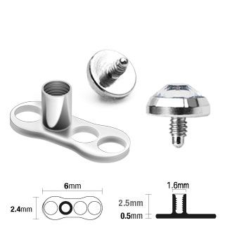 Hier ontvang je 25 dermal anchor set, met 25 bases van zuiver titanium en 25 toppen van chirurgisch staal met een transparant steentje. Je kiest zelf of je de toppen graag in 3, 4 of 5 mm in diameter wilt hebben.