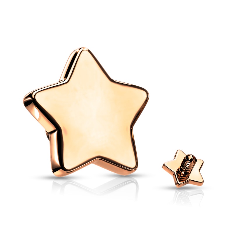 Alle sterren zijn gemaakt van chirurgisch staal en hebben d.m.v. een speciale oppervlak behandeling een dun laagje gekleurd titanium gekregen. De maat van het schroefje op de achterkant is een standaardmaat en past zodoende in alle dermal anchors in het lichaam.