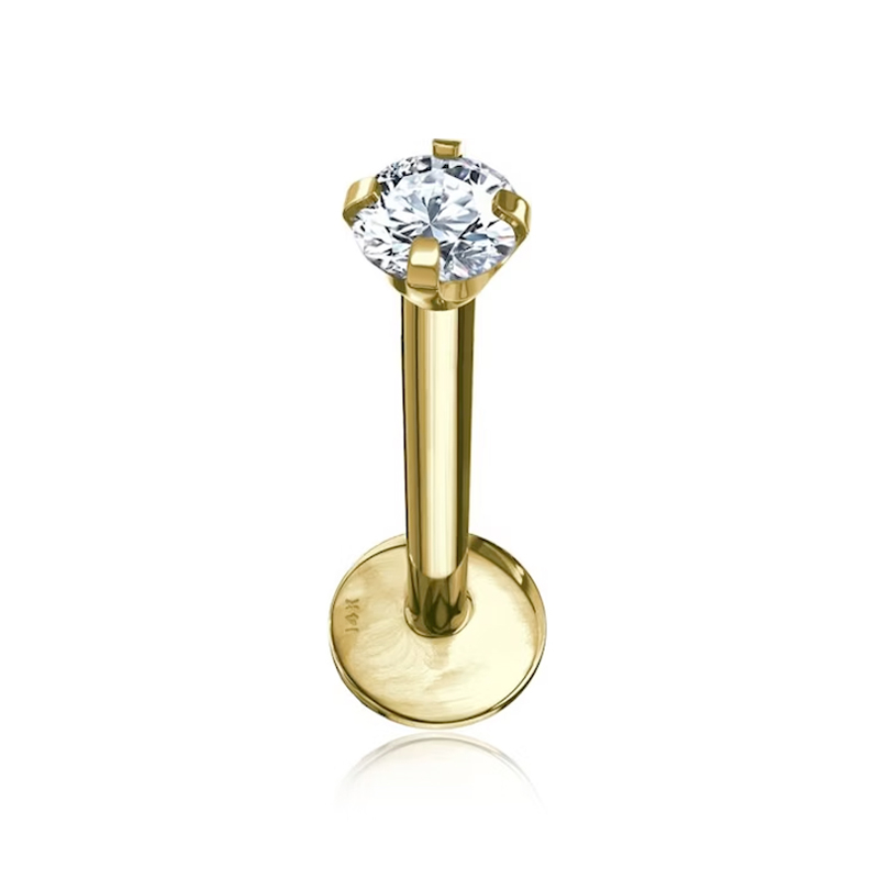 Labret van 14 karaats goud met inwendig schroefdraad en steentje