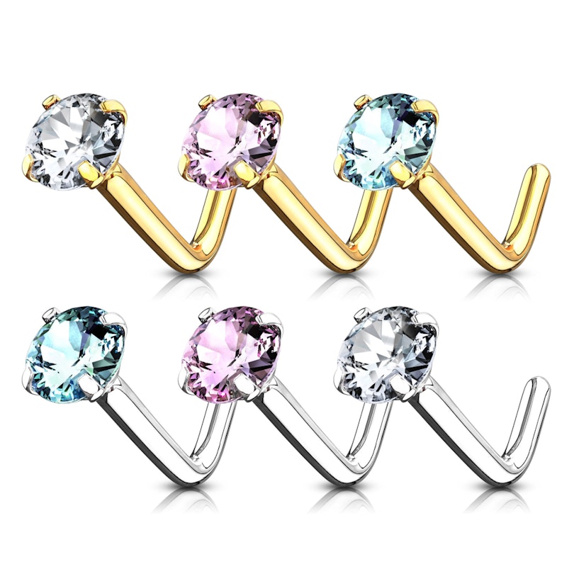 Het sieraad is verkrijgbaar in zowel gewoon geelgoud, wat natuurlijk de meest klassieke variant is en ook de meest bekende, en in het mooie en stijlvolle witgoud, wat extra elegant is. Je kiest natuurlijk ook zelf de kleur voor je steen, welke verkrijgbaar is in transparant, turquoise of roze. Als je voor de gestroomlijnde en stijlvolle look wilt gaan, kies dan voor de witgouden neuspiercing met het transparante steentje. Als je daarentegen juist liever een verfijnde en vrouwelijke look hebt, dan kun je het beste voor een van de overige modellen gaan, aangezien ze allemaal mooi, meisjesachtig en vrouwelijk zijn. Maar omdat de prijs voor dit sieraad zo lekker laag gehouden is, kun je eigenlijk net zo goed twee van deze sieraden bestellen als je toch niet weet wat je wilt kiezen :).