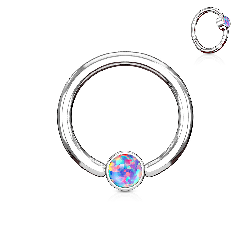Deze ring lijkt op de meeste andere gewone piercingringen - het enige verschil is de bal zelf, die niet rond is, maar cilindrisch. Hierdoor ziet de opaalsteen aan de voorkant er enigzins plat uit. Tegelijkertijd betekent het ook dat de opaalsteen vaak uit het lichaam zal wijzen als de sieraden plat op de huid liggen en dus naar buiten wijzen.