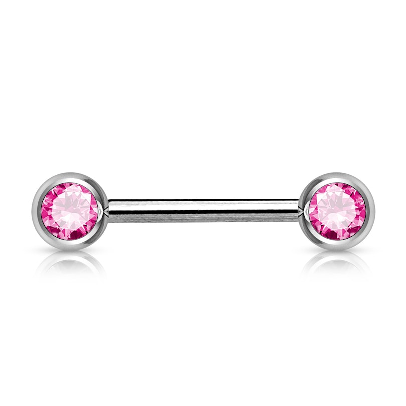 Deze tepelpiercing is heel eenvoudig gehouden. Het is een rechte staaf met twee balletjes - een aan ieder uiteinde. Beide balletjes zijn van een enkele steen voorzien, die niet zoals bij andere piercings naar boven zit, maar juist naar voren wijst. Dit maakt het een ideaal sieraad voor een tepelpiercing, aangezien de steentjes goed zichtbaar zijn. Dat betekent wel, dat het sieraad niet omgedraaid kan worden.