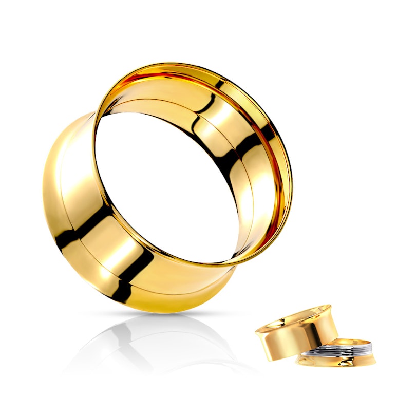 Wondermooie en eenvoudige tunnel in sobere stijl. Als je van eenvoudige sieraden met een klassiek design houdt, dan is deze mooie tunnel van chirurgisch staal met een kleurcoating zeker wat voor je stretch. Chirurgisch staal is een erg populair materiaal voor piercingsieraden en hier hebben voor jou daar een vergulde luxeuitgave van.