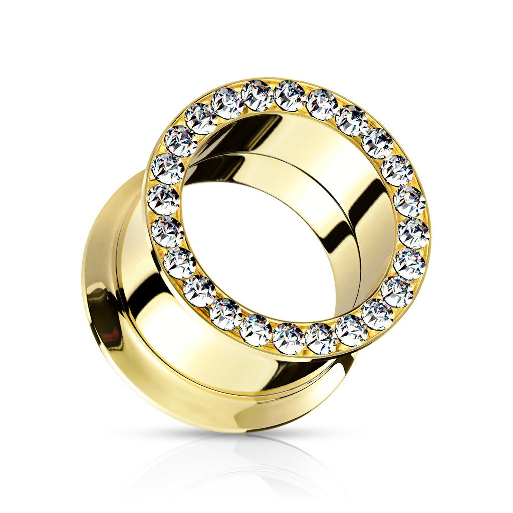 Deze tunnel is gemaakt van verguld chirurgisch staal en met veel transparente steentjes langs de rand versierd.