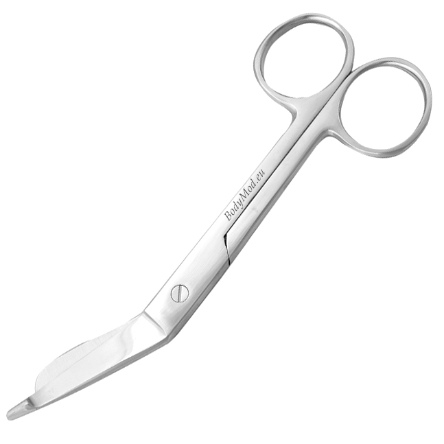 Deze verbandschaar, zoals de naam al aanwijst, is gemaakt om verband of andere soorten stof te knippen. De schaar heeft een hoek en is aan de punten afgerond, zodat je niemand kunt steken met de schaar.