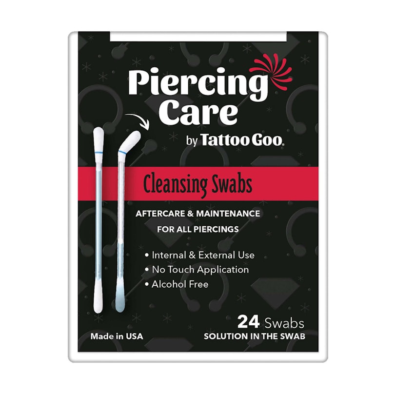 Meer hoef je echt niet te doen om je piercing goed te verzorgen. Je hoeft niet na te spoelen of andere verzorgingsmiddelen te gebruiken.