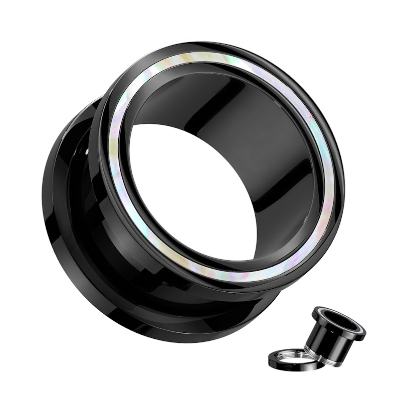 Wie zei er dat tunnels basic moeten zijn? Deze zwarte tunnel met parelmoeren randje brengt drama met een gedurfde en gladde finish. Vergelijk het met een ādark modeā voor je oren, maar elegant.