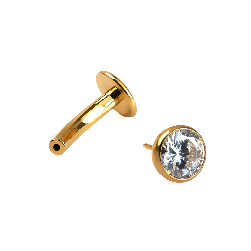 Omdat het sieraad gemaakt is van titanium, is het hypoallergeen en tegen water bestend. Het sluit met een push-in mechanisme, waardoor er geen schroefdraden zijn die door je piercing heen hoeven om deze vast te zetten.